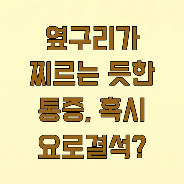 옆구리 쪽으로 갑자기 참기 힘든 극심한 통증이 느껴진다면 요로결석 을 의심해 볼 수 있어요. 통증이 등 쪽에서 시작해서 복부나 사타구니 쪽으로 뻗어나가는 특징을 보이기도 하죠. 메스꺼움, 구토, 혈뇨가 동반될 수도 있답니다. 결석의 크기나 위치에 따라 치료 방법이 달라지므로, 통증이 있다면 꼭 비뇨의학과 진료 를 받아보세요.